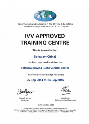 國際駕駛員培訓(xùn)協(xié)會(IVV)認(rèn)證的防御性駕駛